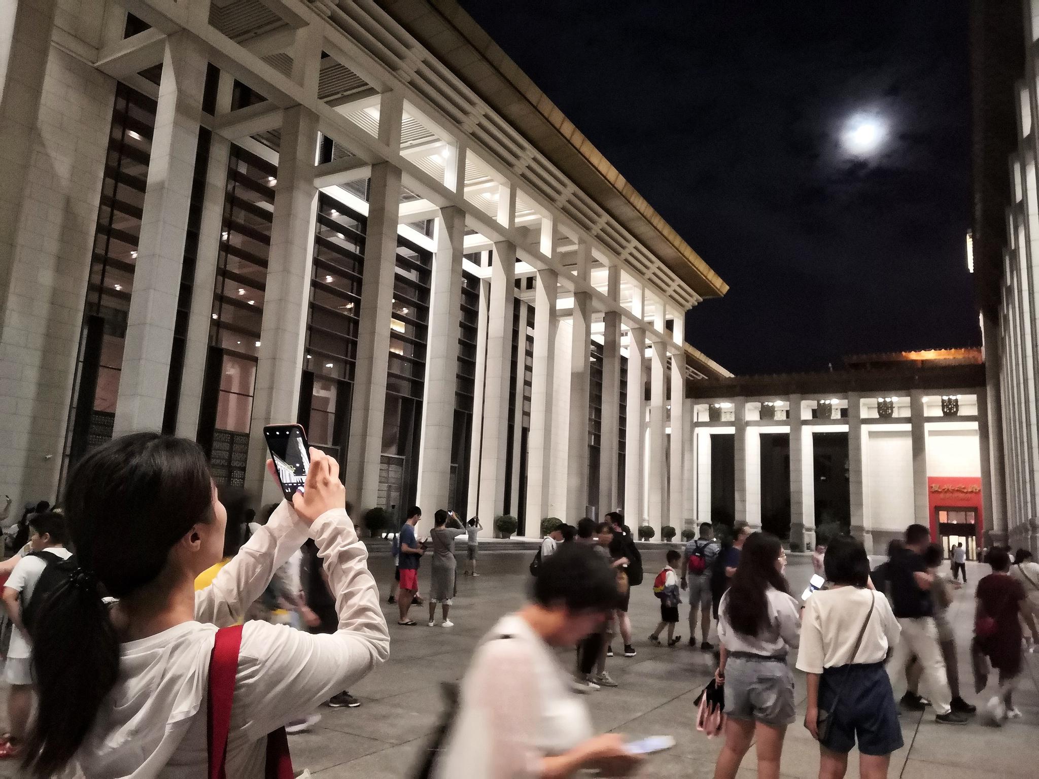 秦代的县政运行是怎么回事,这位头发白了一半的老大爷可以讲上十几分钟,从郡到县再到乡、亭、里,每一级的职能都可以掰着手指头说说。 八月初,央视在网络调查中问:如果博物馆、美术馆开放夜场,你会考虑前去参观吗?参与投票的723人中,88.9%选择了“会”,而主要原因一项中,夜晚的独特体验、不耽误白天工作、避开高峰人群,各自获得了超过30%的票数。 延长闭馆的几个小时给参观者带来便利,也给服务人员带来更多工作。博物馆的每一层都分布着八九位保洁人员,高度过膝的黑色塑料袋里,装着广西小朋友的零食袋,湖北高中生的湿纸巾,或是黑龙江夫妇的矿泉水瓶。这样的袋子,他们每人每天要拎出去十一二袋,赶上延长闭馆的周日,数字则会上升到十六七。  延时后的国博,闭馆已是晚上九点,许多参观者在门口拍月晕。新京报记者王双兴 摄