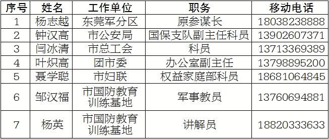 为全面加强征兵廉政建设,东莞市征兵办公室设立廉洁征兵监督员,名单公示如下。广大市民如果发现征兵过程中有不廉洁行为,可以拨打市征兵办公室举报电话0769-28570015,或者向监督员举报。