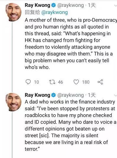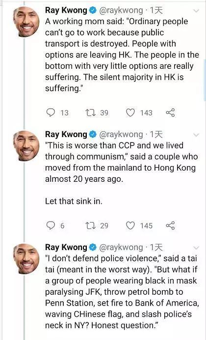 上门维修电话:028-83085150,大丰格兰仕油烟机售后维修网点电话, 原标题:敢曝光香港真相,又一位西方大媒体撰稿人惨遭围攻 这位美国商界人士名叫Ray Kwong,是《华尔街日报》、《福布斯》和《外交政策》杂志等欧美媒体的撰稿人,文章涉及的领域多为中美两国的清洁能源、民用航空等领域。 不过,昨天他却在自己的个人社交账号上连续发了多个帖文,分享了8位他在香港的朋友和同事对于香港目前情况的担忧,尤其是香港街头的暴乱分子所引发的种种暴力问题。  “亲爱的香港示威者,当你们在街头折腾的时候,一群生活、工作和安家在香港的朋友与同事请我分享一下他们的看法。你们可能不会喜欢你们所要听到的内容”,Ray Kwong写到。 接下来,Ray Kwong开始挨个分享这些“同样很支持民主与人权”的香港朋友的故事与观点。他先提到一位有三个孩子的香港母亲,称她表示香港目前所发生的事情已经与捍卫自由无关了,而是变成了暴力袭击任何不支持自己观点的人。 一位在金融行业工作的父亲称,他不仅曾被“示威者”在一处他们设置的路卡处拦下,被检查了手机并被复印了证件,而且任何敢提出不同观点的人都会在街头遭到殴打,以至于生活在这种真实恐怖下的香港大众不得不保持沉默。  一位职场母亲说,普通人已经无法去上班了,因为公共交通被毁坏了。有条件的人正在选择离开香港,而底层没什么条件的人就只能受苦。“香港沉默的大多数在受苦”。 一对20年前从内地来到香港的夫妻说,现在香港的局势比共产党的统治差多了。 一位太太则质问说:我不支持警察暴力,但如果一群人带着黑面具去美国纽约的肯尼迪机场搞破坏,往纽约的宾夕法尼亚车站扔汽油弹,在美国银行纵火,用刀划警察的脖子,同时还挥舞着中国国旗,他们又会被怎样对待呢?  另一位Ray Kwong的太太朋友也表示,任何敢提出不同观点的人都被人在网上曝光了家庭住址,孩子的名字和所就读的学校。这是纯粹的恐怖。那些人已经完全失去了道德。  Ray Kwong还分享了两个较长的故事。第一个故事发生在香港仔地区。一个朋友表示香港仔一处隧道里所有的车都被“示威者”拦下,然后这些头戴黑面具的人还是用绍光灯检查每一辆汽车,他前面一位开奔驰的司机还被要求交出手机给他们检查。而他自己为了保护孩子不受暴力威胁,在被这些人检查后不得不向他们挥手致意。这个人还表示这些示威者还把之后的高速路也给封锁了,但幸运的是警察来了并清走了堵路的垃圾。 “虽然电视和网络新闻都没有报道香港仔的这一情况,但这是真实发生的”,这位Ray Kwong的朋友说,他还提醒人们一定要留心示威者,因为他们很可能会拦下你,检查你的手机,看你有没有反对他们的内容。   第二个较长的故事也提到了“示威者”在堵塞交通和封锁道路的事情,幸运的是这个故事的经历者在好心人的指点下提前避开了被封锁的道路,但此人也听说示威者在检查车辆,目的似乎是为了找出那些下班后的警察。 “这个经历太可怕了,这些示威者就是在普通市民中制造恐惧。”   在分享完上述这些经历和观点后,Ray Kwong总结说这么做是为了给“示威者”一些不同的看待香港问题的视角,并希望“示威者”在“捍卫民主”时能够对那些支持他们的人表现出同情和怜悯,多爱一点香港,因为他们现在的做法太吓人了。 但令人遗憾的是,Ray Kwong这番善意提醒并没有唤醒那些早已深陷暴力和极端、甚至恐怖主义思维之中无法自拔的“示威者”。 在他这些帖文的评论里,大量香港街头“暴徒”的支持者就抛出了那些早已“令人生厌”的各种给暴力“洗地”观点,比如“你的故事没有证据,我没看到”,“你的故事是支持警察的‘蓝尸’捏造的”或是“虽然暴力存在,但那都是香港警察、香港政府和北京逼的”,“示威者们是被吓坏了,压力太大了,才会这样”,“你的工作就是污蔑示威者吧?”“你是中共派来做抹黑宣传的吧”等等……    更有暴徒的支持者表示,虽然“抗议”会造成生活不便,追求民主自由就会有“牺牲”和“代价”,所以不该抱怨。  一些支持暴徒的白人也在评论中装傻,称他们就没有被拦下过。  可不久前《纽约客》华裔记者樊嘉扬在遭到暴徒围堵后就曾吐槽说,她只有在跟着自己的白人朋友出行时才会被友善对待,否则就会被当成“中国人”遭到恶意对待——当然,她也因为吐槽那些“示威者”的暴力行为而同样遭到了“示威者”支持者的网络暴力,搞得好像被攻击是她自己的错一样。  另外,也有一些暴徒的支持者直接对Ray Kwong发起了人身攻击,让他“闭嘴”,说他账号“被黑了”,还有暴徒支持说他说的内容都是“垃圾”。   一位支持Ray Kwong的网民则调侃说“你现在已经成了被认证的外国五毛,因为你居然敢质疑这些‘被CIA认证的和平示威者’”。  Ray Kwong倒是没有被这些人身攻击吓倒,反而还幽默地调侃起这些攻击他的人来:我的话语通过一种特殊的方式触碰到了他们,这令我的内心感到很“温暖”。  最后,我们想说,不论香港街头暴徒的支持者怎么翘舌雌黄的为暴力“洗地”,越来越多客观看待香港局势的外国人,都已经开始意识到香港街头的暴力问题有多恶劣。比如几天前我们就报道过来自澳大利亚主流媒体“第七频道”的记者Robert Ovadia就亲眼目的了暴徒们袭击与他们观点不同的香港艺人马蹄露的