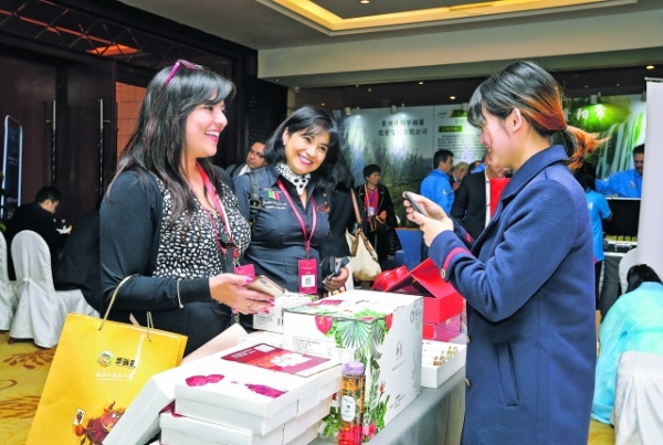 图为嘉宾与参展企业相谈甚欢,彼此留下联系方式。 开阳牛肉干、乌当中柔燕窝、黔南龙里刺梨产品……10月31日,在第36届世界批发市场联合会大会设置的特色农产品展示区,贵州特色农产品备受嘉宾青睐。 为吸引嘉宾前来品尝,参展企业还提供了试吃,现场人气爆棚。尤其是贵州特色农产品折耳根还被做成了五香味和麻辣味的食品,凭借着独特的风味,前来试吃的嘉宾纷纷点赞。“没想到折耳根经过加工后,味道会这么好。”浙江良渚蔬菜市场开发有限公司有关负责人章金生说,期待双方进一步合作。 开阳筑城辣妹食品有限公司总经理刘天明表示,希望通过此次大会,吸引一些有意向性的客户,拓宽销售市场,助力黔货出山。“这次大会,我们带来了开阳的油辣椒、牛肉干等,嘉宾们的试吃反馈效果很好。”刘天明说。 “这次大会我们带来了刺梨果饮、刺梨茶、刺梨山楂膏等7个刺梨系列产品,卖得最多的是刺梨原汁和刺梨茶。”贵州洋太生物科技有限公司相关负责人说,他们希望借此机会,寻找有意向的合作伙伴。 记者注意到,展示区现场,嘉宾们关心的还是产品的特点、价格、功效等。为让嘉宾充分了解产品特色、公司规模等,各参展企业准备了详细宣传材料,通过现场展示代表产品,吸引有意向的客户,商谈进一步合作的可能。(记者 成虹飞)