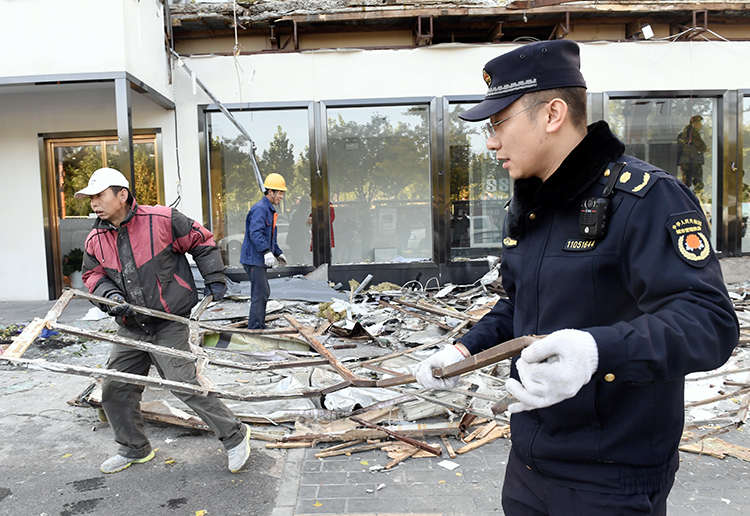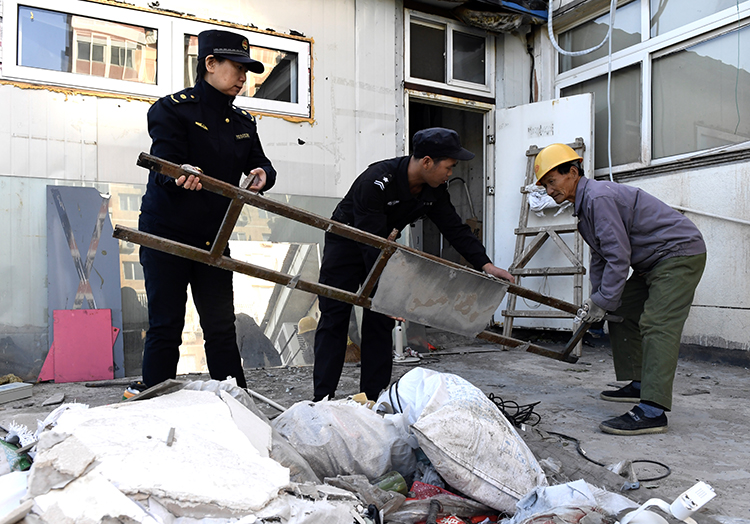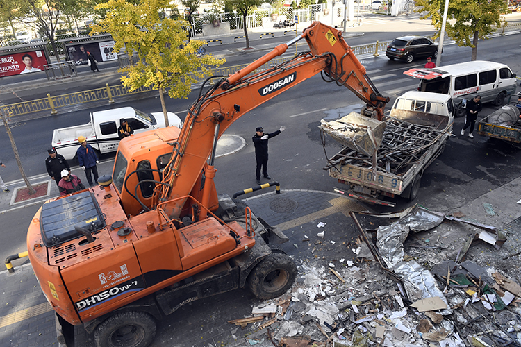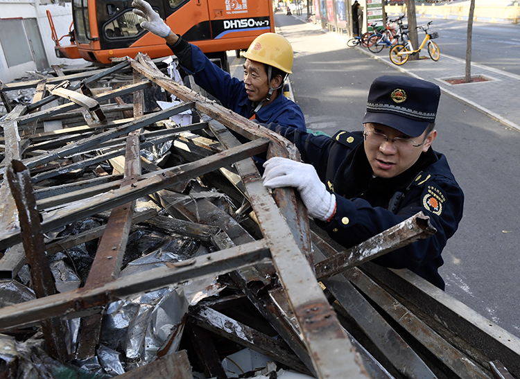 清除街道上的建筑垃圾。 新京报记者 吴宁 摄影报道 编辑 张英 校对 李项玲