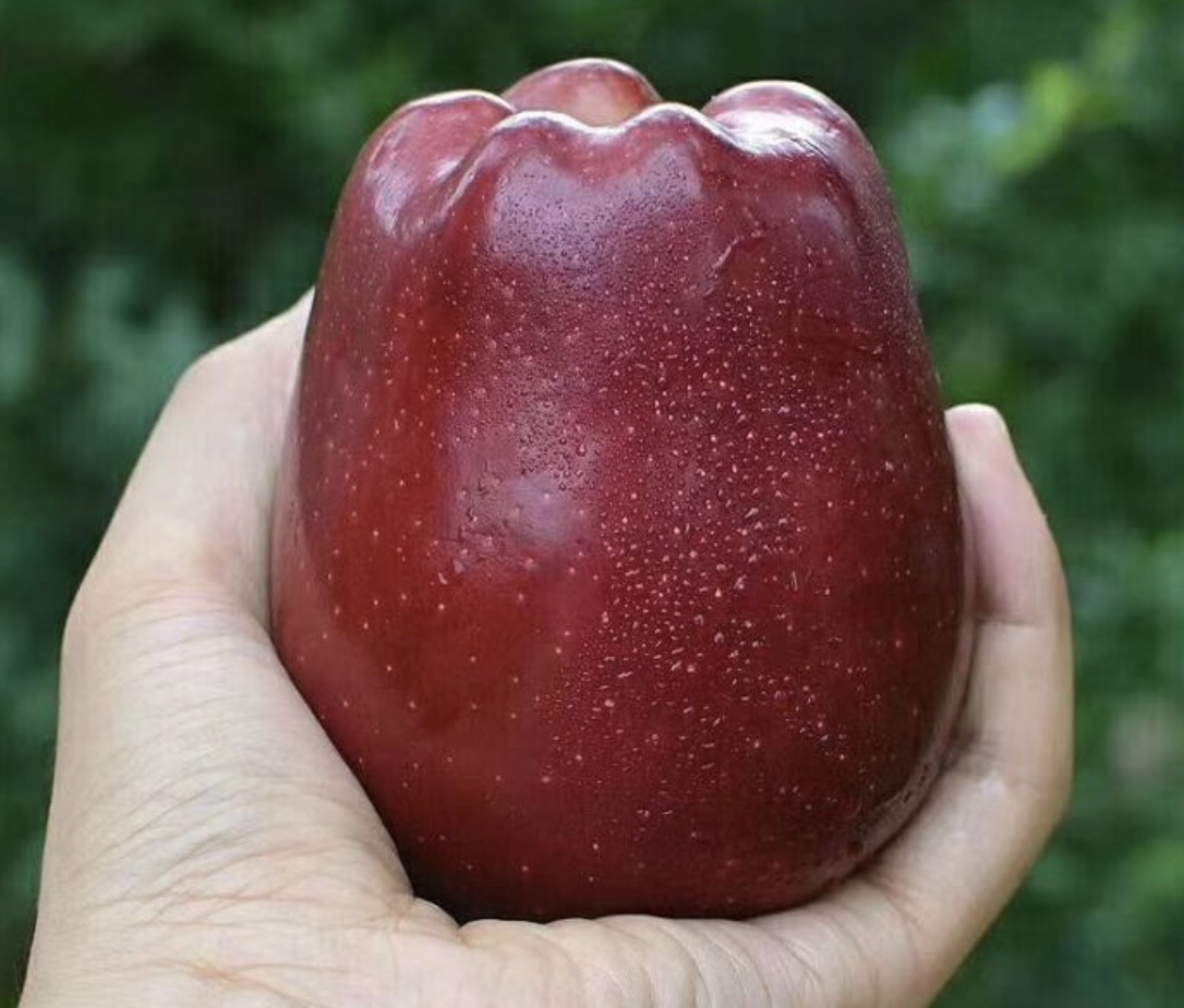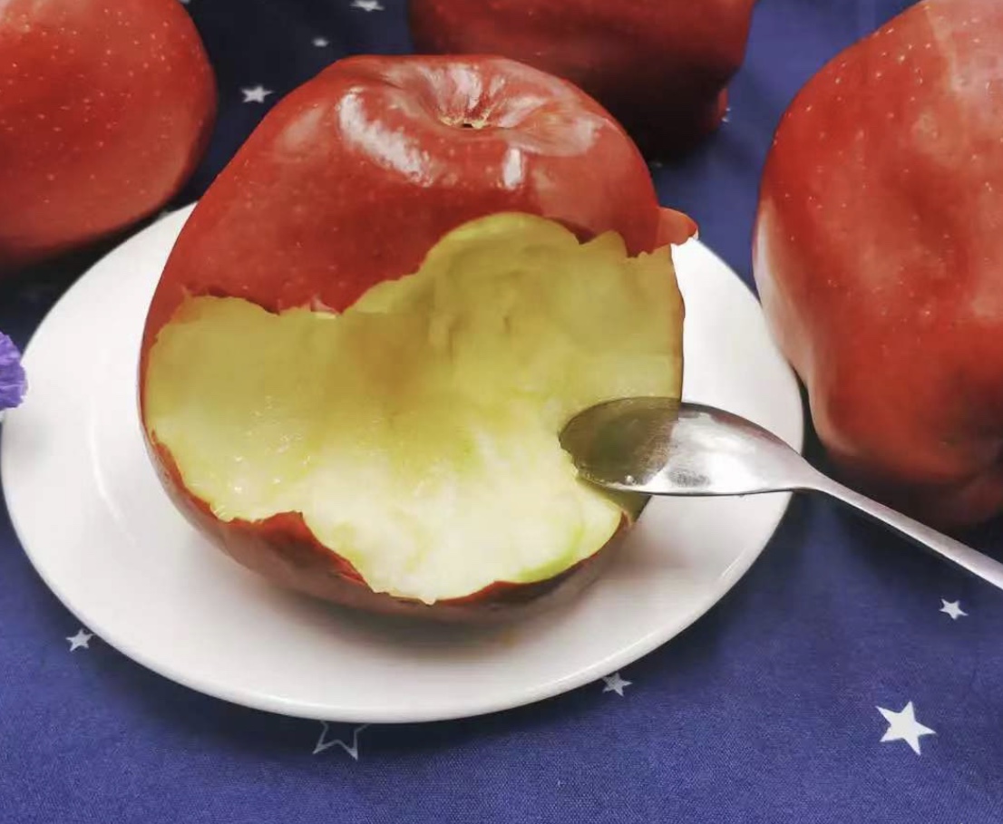 外形酷似蛇果的花牛苹果。受访者供图 近日,新京报记者走访北京新发地市场,在多家水果商的店面都见到了天水花牛苹果。花牛苹果的外观和美国的蛇果十分相似,个头比普通的苹果要大。据果商刘峰介绍,花牛苹果单个果重能达到半斤。 花牛苹果是国家地理标志产品,肉细致密,汁多嫩脆且清新爽口。刘峰告诉记者,花牛苹果上市的时候,老人和小孩买的比较多,因为果肉细密,带着一些沙沙的颗粒感,都可以用勺子挖着吃,也被称作“老奶奶苹果”,特别适合牙口不好的老人和小孩吃。
