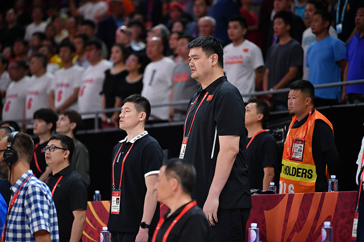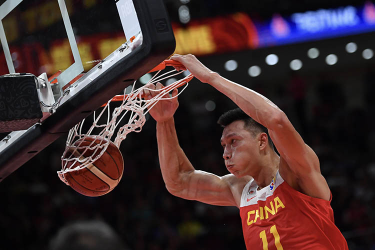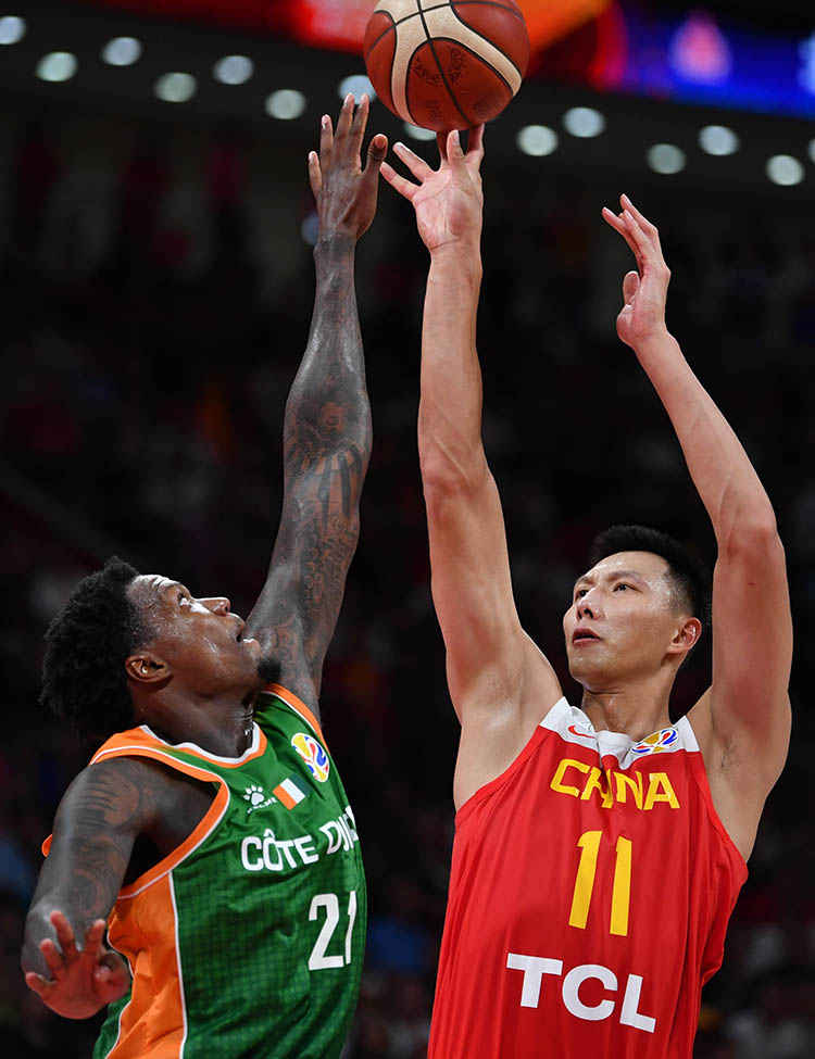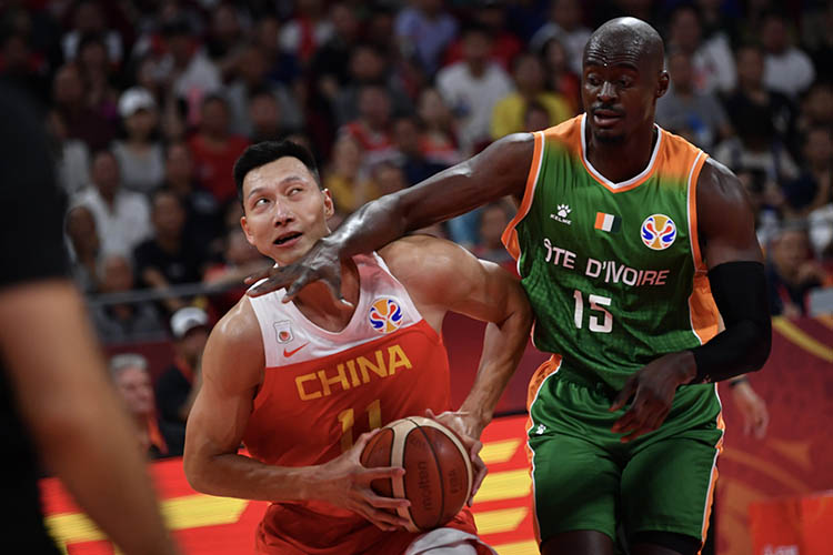 对手采用犯规战术阻止中国队11号易建联进攻。