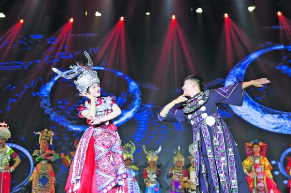 图为参赛选手身着民族服装进行表演。 10月18日,第四届贵州省文明旅游志愿者形象大使大赛总决赛在贵州民族大学举行。 大赛由共青团贵州省委、贵州省精神文明办、贵州省民政厅、贵州省文化和旅游厅、贵州省文联、贵州省志愿者协会共同举办,自5月24日启动以来,共有来自省内外的1500余名选手参赛。贵州文明旅游志愿者形象大使将通过志愿服务深入基层一线,推荐贵州旅游、文化,助力脱贫攻坚。 贵州省文明旅游志愿者形象大使大赛已连续举办四届,在前三届大赛中,共有省内外8300余人报名参赛,网络总浏览量达893万余人次,吸引了社会各界的广泛关注。(记者 衣琼 文/图)