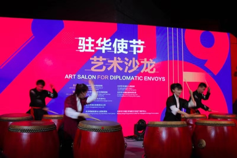 新京报快讯(记者 陈沁涵)10月30日晚,2019年驻华使节艺术沙龙活动在北京明城墙遗址公园举办。来自澳大利亚、捷克、丹麦、匈牙利等20余国的驻华使馆代表、驻京文化中心代表等近百名外国来宾参与活动,现场体验中国非物质文化遗产项目,还欣赏了具有中国特色的打击乐、京剧、杂技和乐队表演。