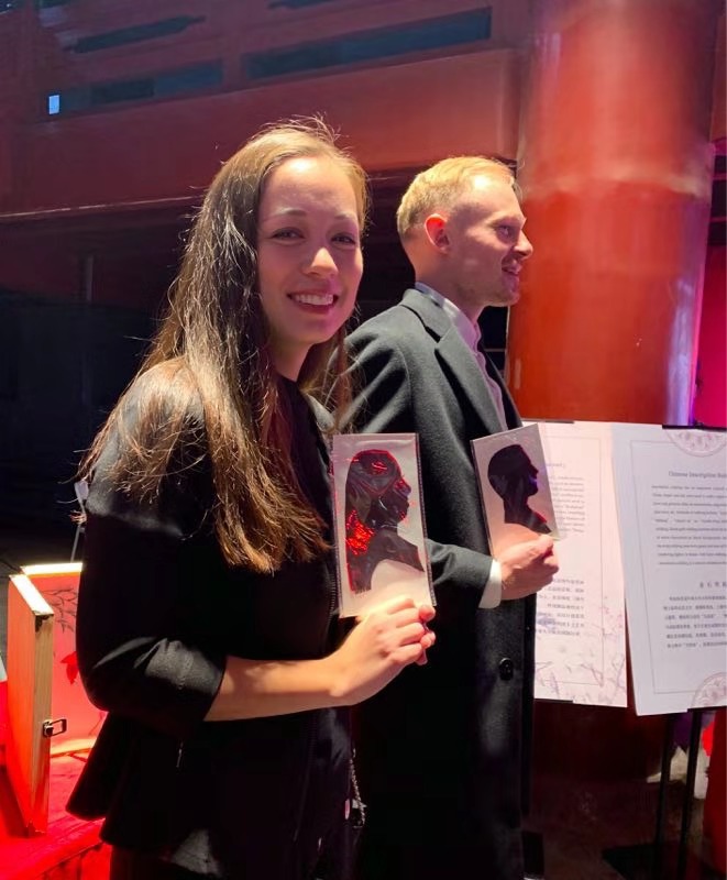 外国友人手拿自己的侧影剪纸拍照留念。摄影/新京报记者 陈沁涵 活动开幕,北京市文化和旅游局局长宋宇首先向各国嘉宾介绍了北京市文旅融合发展的建设情况,并表示希望加强北京市与各国在文化、旅游领域交流合作的意愿。随后,北京市海外文化交流中心和北京市东城区文化和旅游局的代表分别向现场来宾推介北京市文化、旅游交流品牌活动,包括全球吉庆生肖设计大赛、中国-中东欧文化艺术嘉年华等。