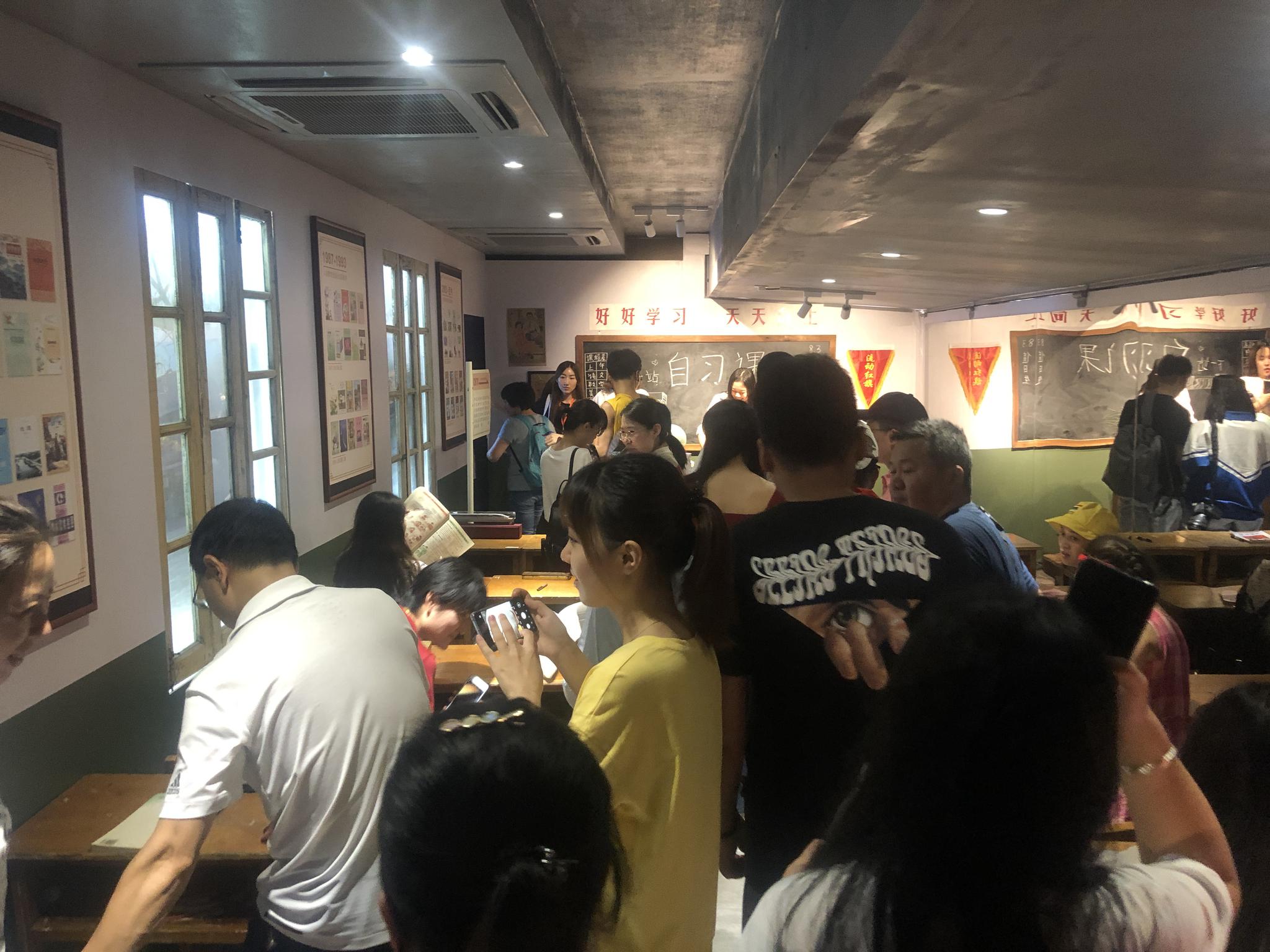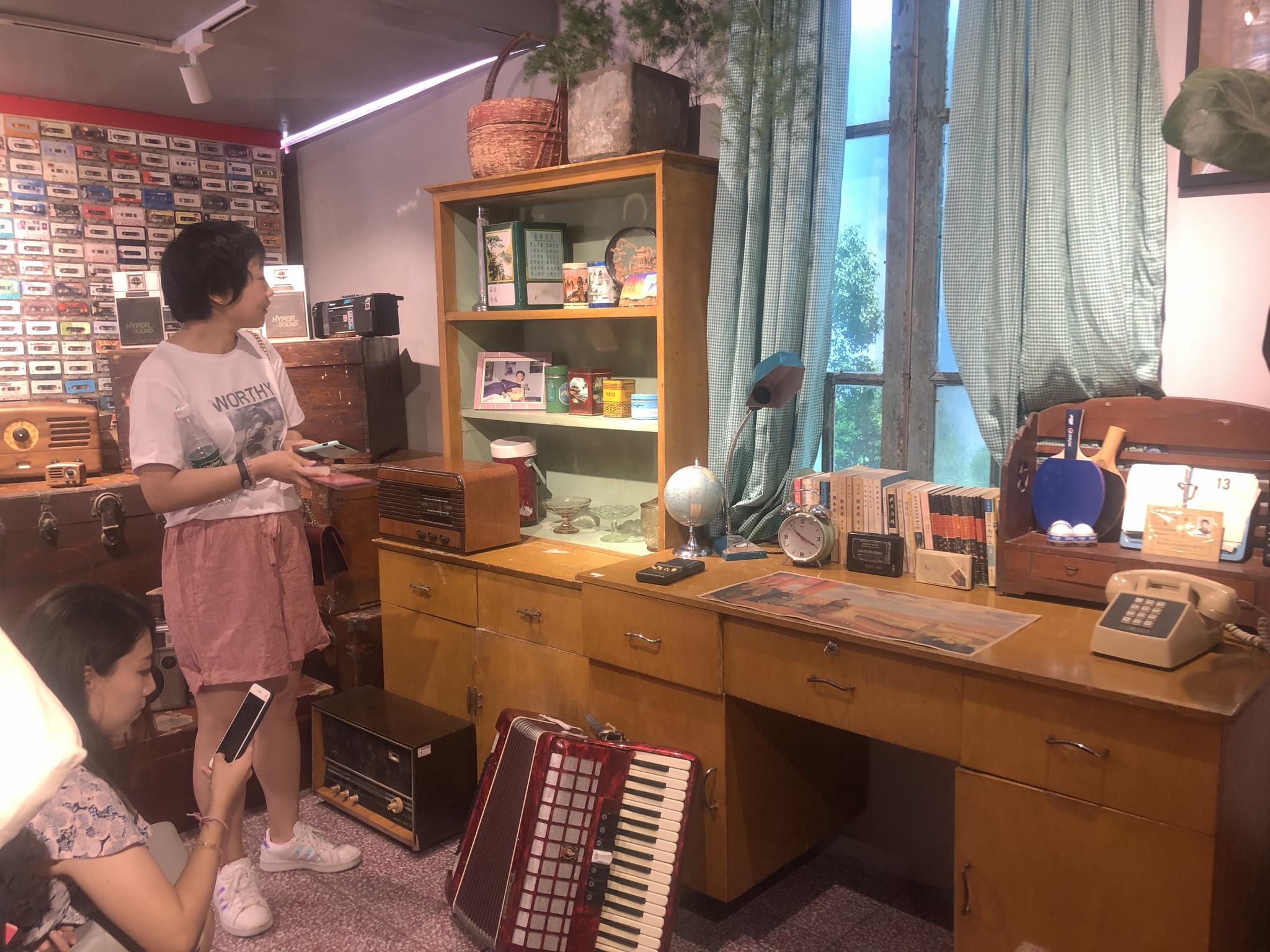 从1949年到2019年,这辆“时光穿梭车”带你穿越70年。  8月2日,两辆“时光穿梭车”开到蓝色港湾西广场,红色的双层“房车”,1:1复刻的传统供销社货柜,一整面的磁带墙,教室里穿着白衬衫的老师……不仅车上的场景好玩到停不下来,那些记忆里的旧时光,也令人回味又感慨。 据介绍,这两个“大家伙”是人民日报新媒体中心打造的快闪活动——流动的“时光博物馆”,它以场景化模式、沉浸式玩法带参观者“穿越”,不仅看得见摸得着,还可以亲身参与其中。  供销社是个神奇的地方。这三尺柜台对于90后、00后来说既陌生又新鲜,但对于上了年纪的人来说却再亲切不过了,一瞬间带你穿越回米面粮油统统“凭票供应”的时代。  对于年轻人来说,走进时光屋,就像闯进了怀旧电影场景里。面积不大的家,收拾得井井有条。老人们坐在单人沙发上,摸着那些旧家具,就好像真的触摸到了自己年轻时的时光。“看!咱家以前的橱柜跟这个一模一样的!”电视机里的“雪花”沙沙作响,让人觉得旧时光都自带背景音。  80年代同款书桌,堆满了老物件,却仍觉得一秒就能翻到你想要的那本习题册。小时候常用的闹铃、台灯、地球仪、乒乓球拍,地上立着的手风琴,都让文艺青年们兴奋不已。“这个书桌是我跟你爸结婚时候自己打的家具!”在参观的人群中,很多都是全家出动,父母给儿女或爷爷奶奶给孙辈讲述着这些家中老物件的故事。  墙上挂着邓丽君、谭咏麟、张国荣的海报,角落里大方砖的录音机、广播匣子,浓浓的年代感扑面而来。  一整面墙的磁带拼成的“时光”背板很是“壮观”,祖孙三代的时光记忆都在此定格了。  在没有手机的时代,去照相馆拍一张全家福是深具仪式感的活动。在年代照相馆里,人们也可以走进布景中拍照,幸运的参观者还可以换装,拍摄并领取一张属于你的年代照。  在光阴教室里,所有的人不分年龄,统统兴奋地变回了学生。教室里有穿着白衬衫的老师,还有流动小红旗和课程表。系上红领巾,坐在怀旧感十足的抽斗式课桌前,拉着好朋友一起上一堂“自习课”。就连桌上的课本都是当时的旧版本,那些写不完的卷子不再令人烦恼,铁皮铅笔盒也爱不释手。   在创意互动区,你还可以打印一张属于你的“个人定制版人民日报”,人工智能技术帮你定格一幕属于自己的历史瞬间。  到了晚上,“时光放映厅”还会放映露天电影,让你重温搬着小板凳看电影的日子。8月4日晚,更有精彩的“年代音乐秀”,那些流金岁月里的歌为你一一献上,是时候全家出动了!